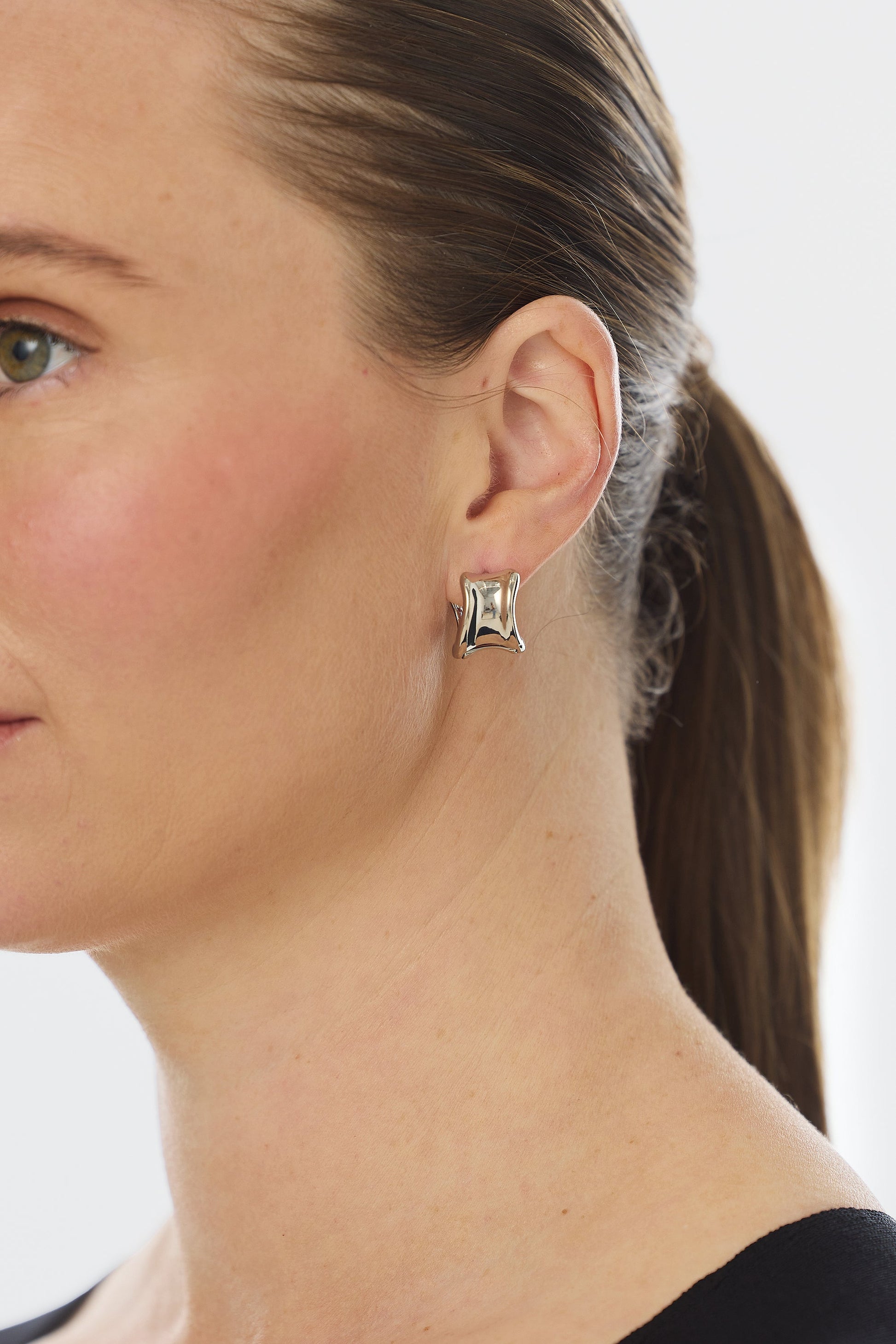 The Abstract Earrings in Silver feature fluid curves and a polished white gold plated finish. An artful update to your hoop collection.