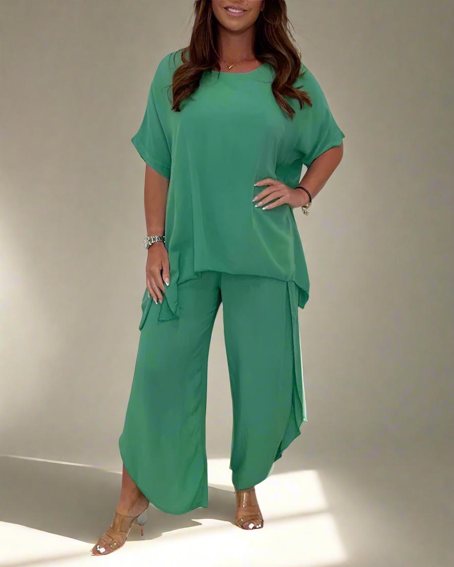 Feel instantly put-together without sacrificing comfort. This two-piece set features a relaxed, tummy-friendly fit with soft, breathable fabric that drapes beautifully over your shape.