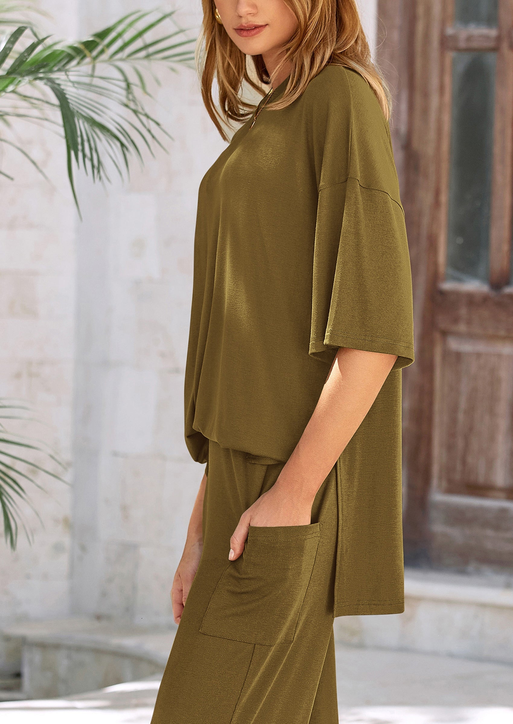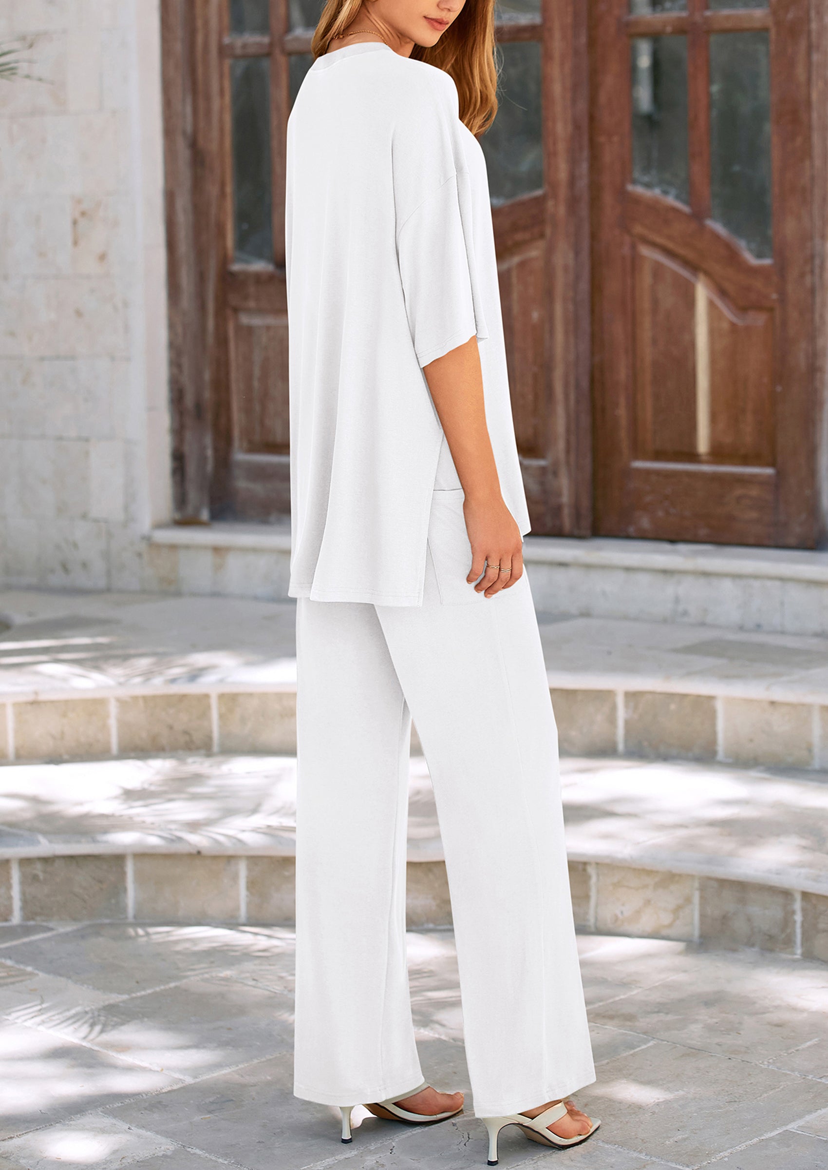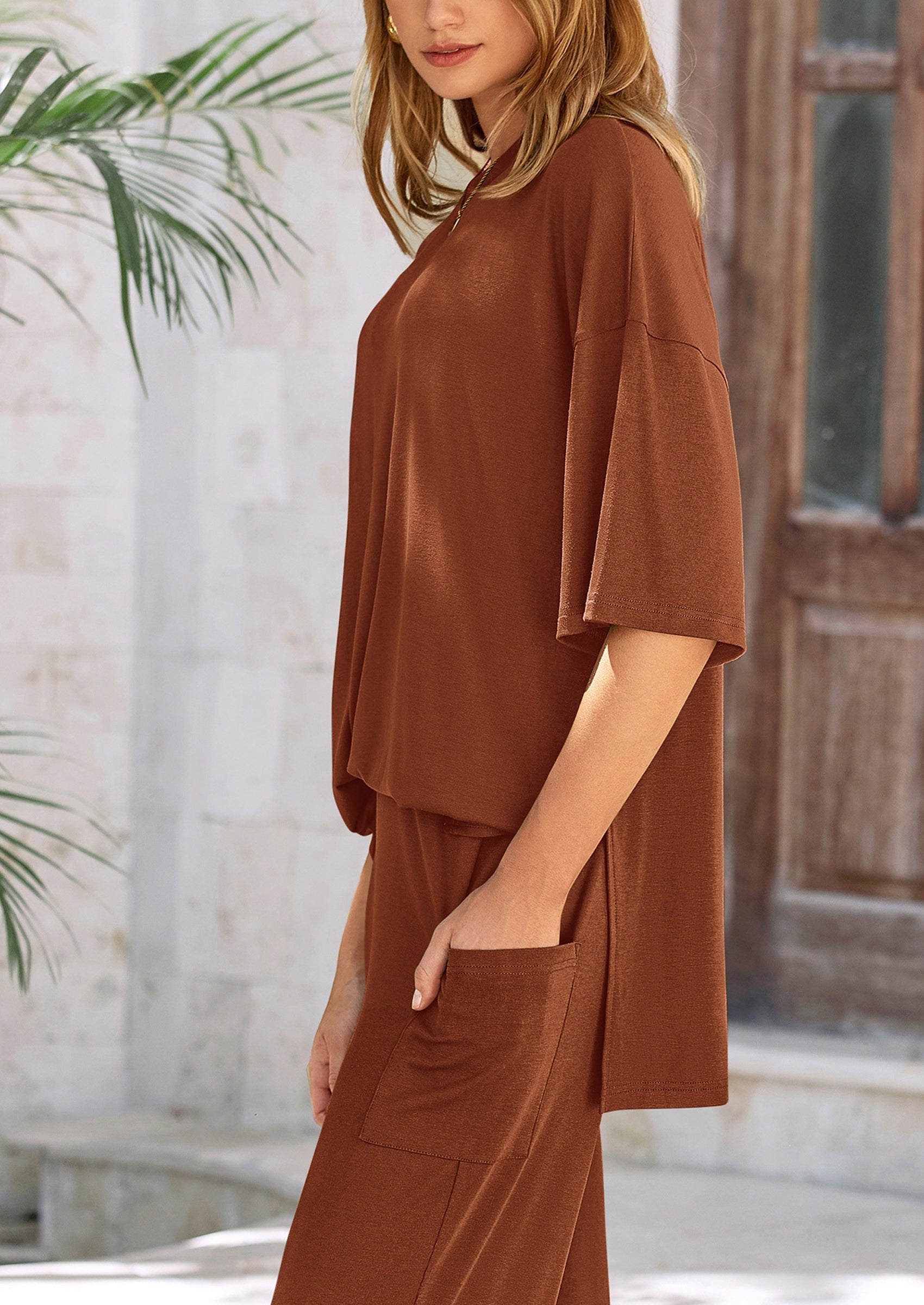 Discover the ultimate in effortless style with our Women's Two-Piece Pullover & Pants Lounge Set. This two-piece ensemble is designed to be your instant outfit, pairing a comfortable, short-sleeved pullover top with relaxed wide-leg pants. Made from a wonderfully soft and lightweight knit fabric, this set feels as good as it looks. The top features a breezy, oversized fit, while the high-waisted pants offer a flattering silhouette with convenient side pockets. Wear them together for a polished and comfortable look perfect for travel, lounging, or running errands. For even more versatility, each piece can be worn as a separate, offering an endless styling possibilities.